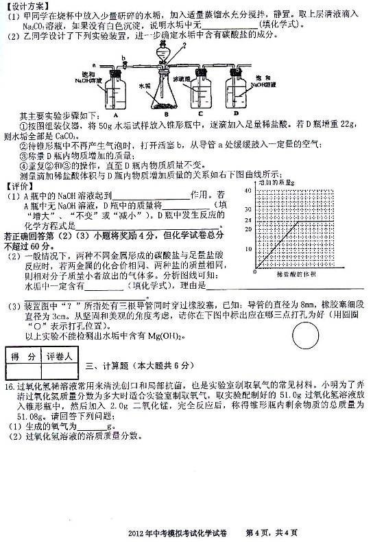 2012年合肥瑶海区三模化学试卷及答案(4)