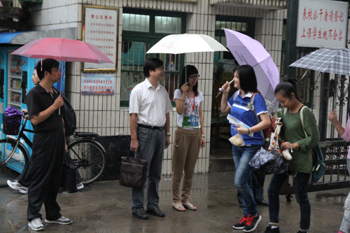 章伟、杨运春和值班老师迎接学生