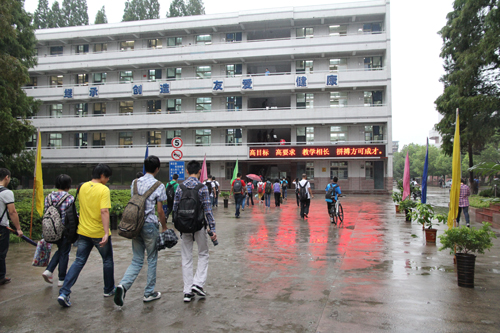 合肥中考网9月3日讯:9月3日,合肥六中新学期第一天,合肥六中百花井校区的大门口,早上七点,天上还飘着细雨,高三年级部主任章伟、副主任杨运春和值班教师已经准时站在门前,迎接全体师生入校。六中党委书记、校长王勇,副校长孔祥斌也早早地赶到百花井校区,在校园内各处进行巡视,还不时与各部门负责人进行交流,给出工作指导意见。(>>延伸阅读:合肥六中校长王勇演讲:读书为了什么)