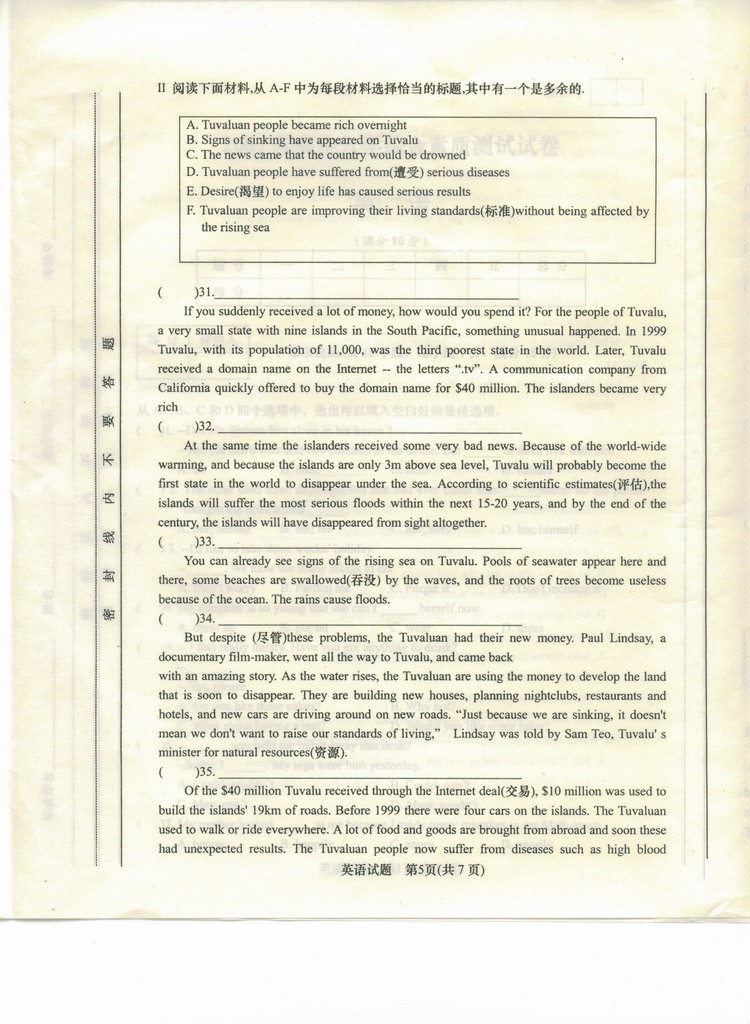 合肥一中自主招生2007年英语试题(无答案)(5)