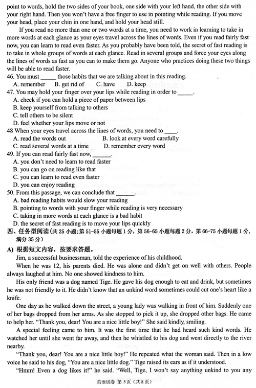2008年合肥一中自主招生试题英语卷(无答案)(5)
