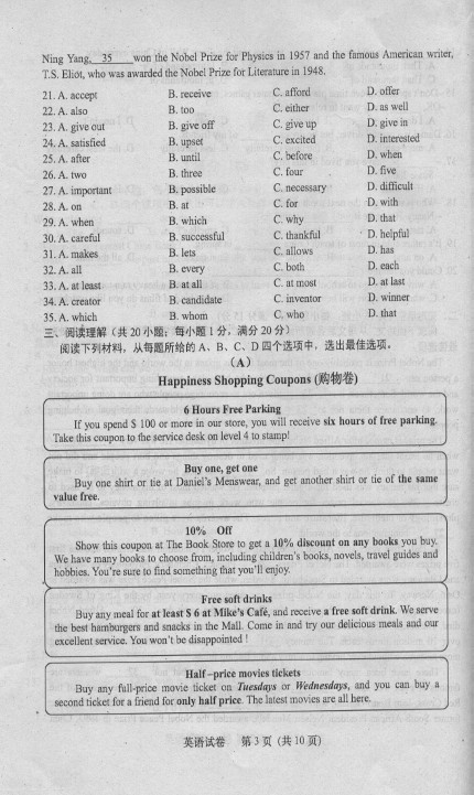 2009年合肥一中自主招生试题英语卷(无答案)(3)