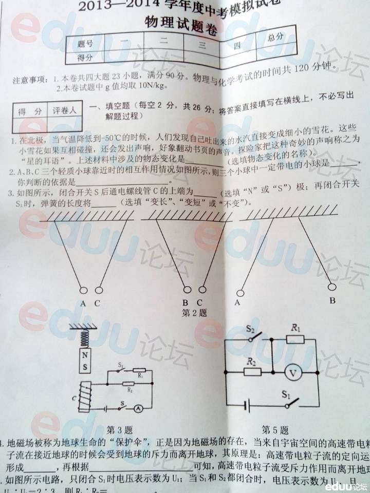 试卷下载:2014年合肥中考一模合肥50中物理卷.doc