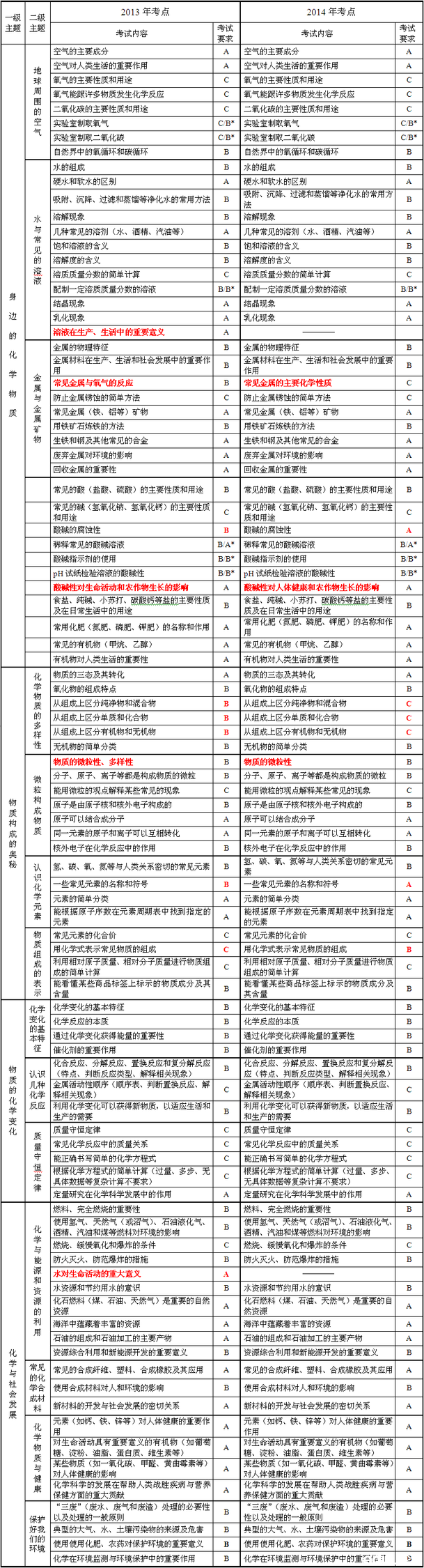 合肥中考网讯:2014安徽中考化学大纲及变化(红色为变化部分),供参考。