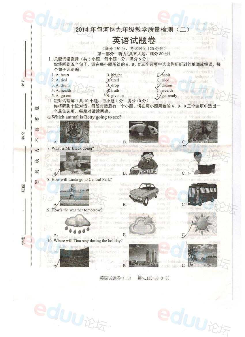 2014年合肥中考二模包河区英语试卷
