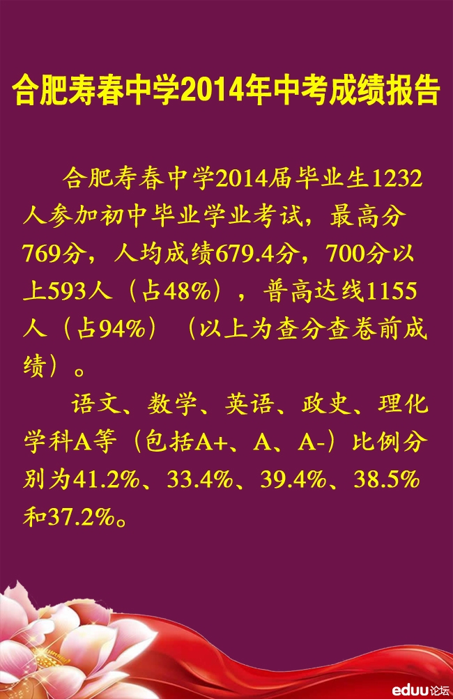 【查看原帖并参与讨论:合肥寿春中学2014中考成绩】