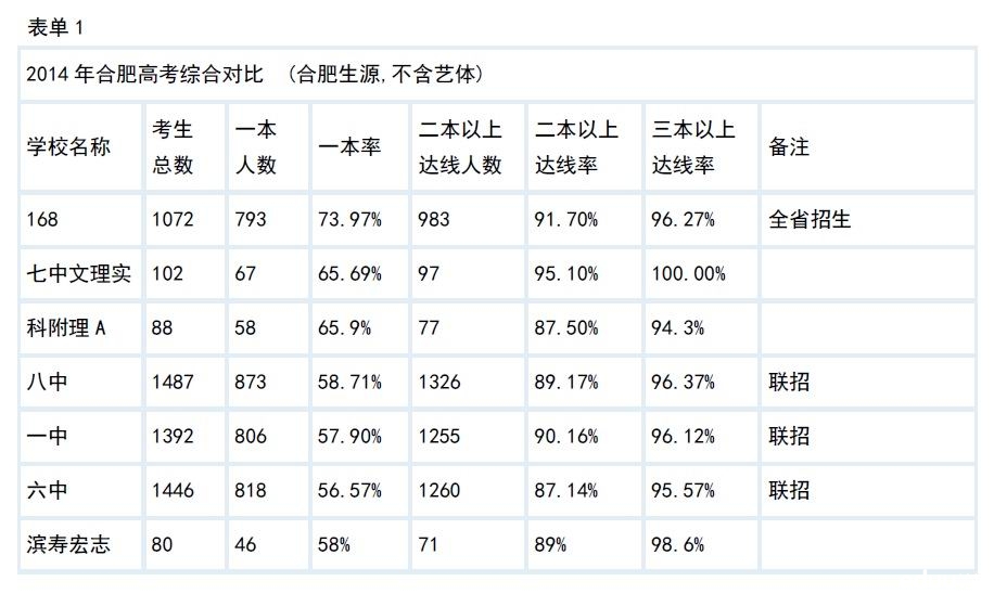 【查看原帖并参与讨论:2014年合肥重点高中高考成绩对比表】
