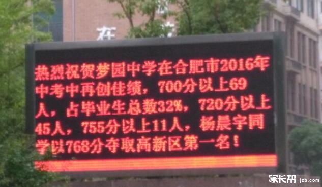 2016年合肥梦园中学中考喜报