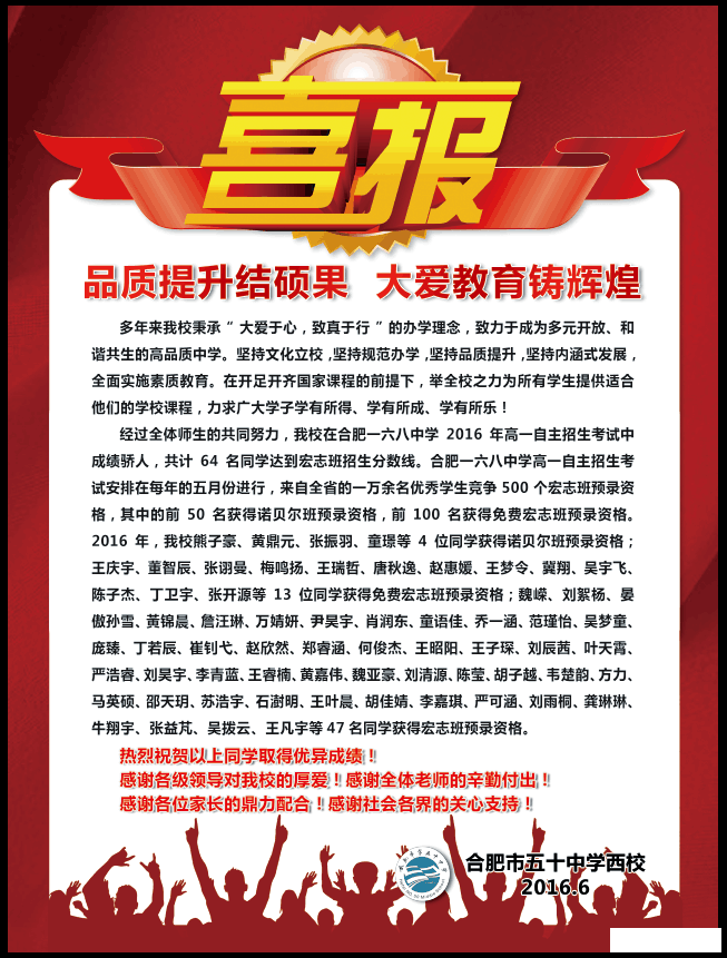 2016年合肥五十中西区中考喜报