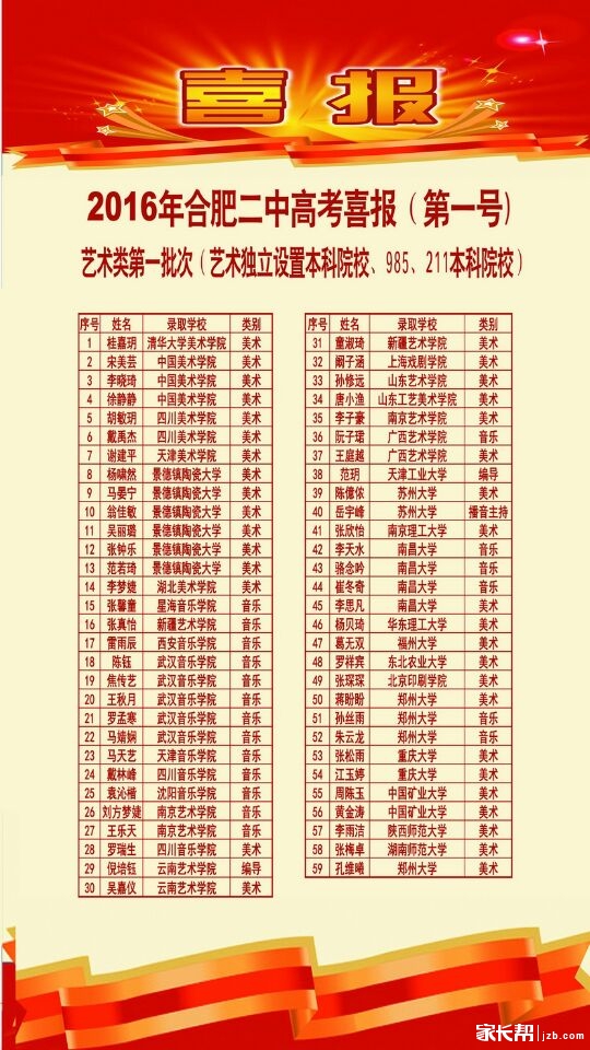 2016年合肥二中高考喜报