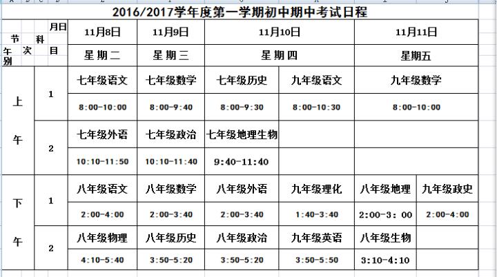 5、七年级语文、数学、英语由教研室统一组织阅卷(11月12日),其他学科由各校安排