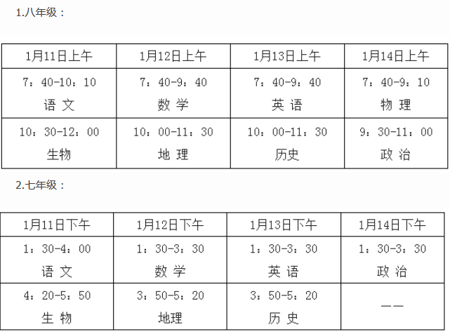 (2)答卷时间:七、八年级语文为150分钟,数学、英语为120分钟,其余各学科均为90分钟。