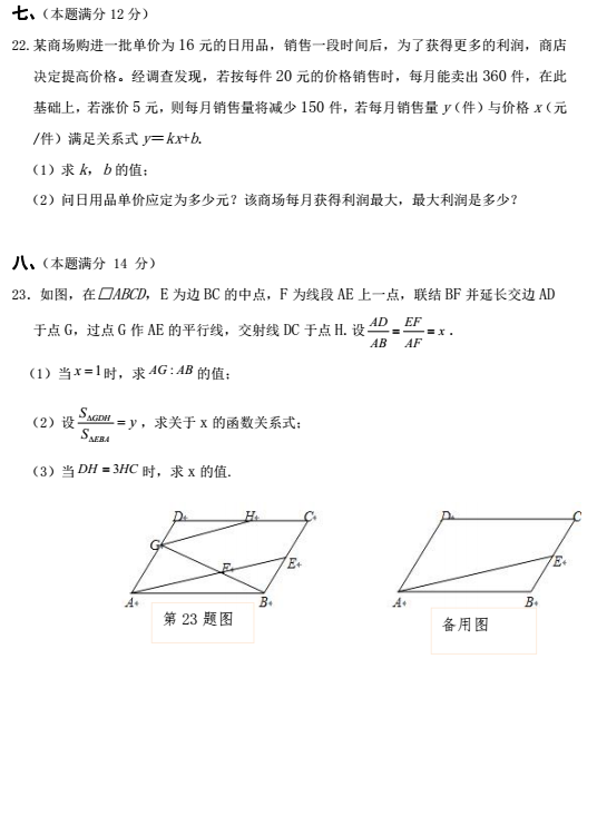 2016-2017学年合肥瑶海区初三期末考试数学试题(5)