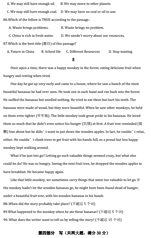 2016-2017学年合肥瑶海区初三期末考试英语试题(12)