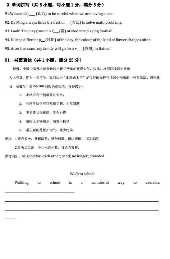 2016-2017学年合肥瑶海区初三期末考试英语试题(13)