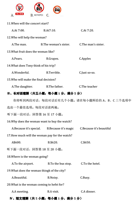 2016-2017学年合肥瑶海区初三期末考试英语试题(2)