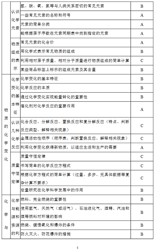 2017年合肥中考考试说明之化学(5)
