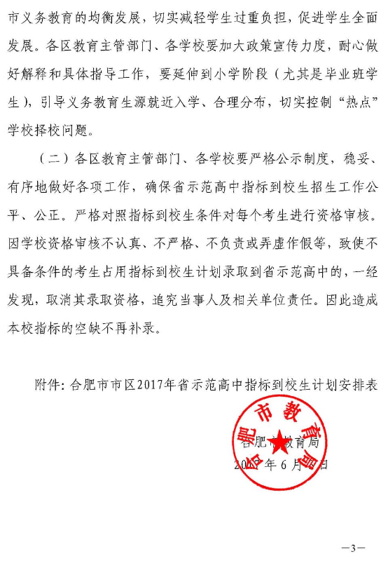 【文件】2017年合肥省示范高中指标到校生计划安排的通知(3)