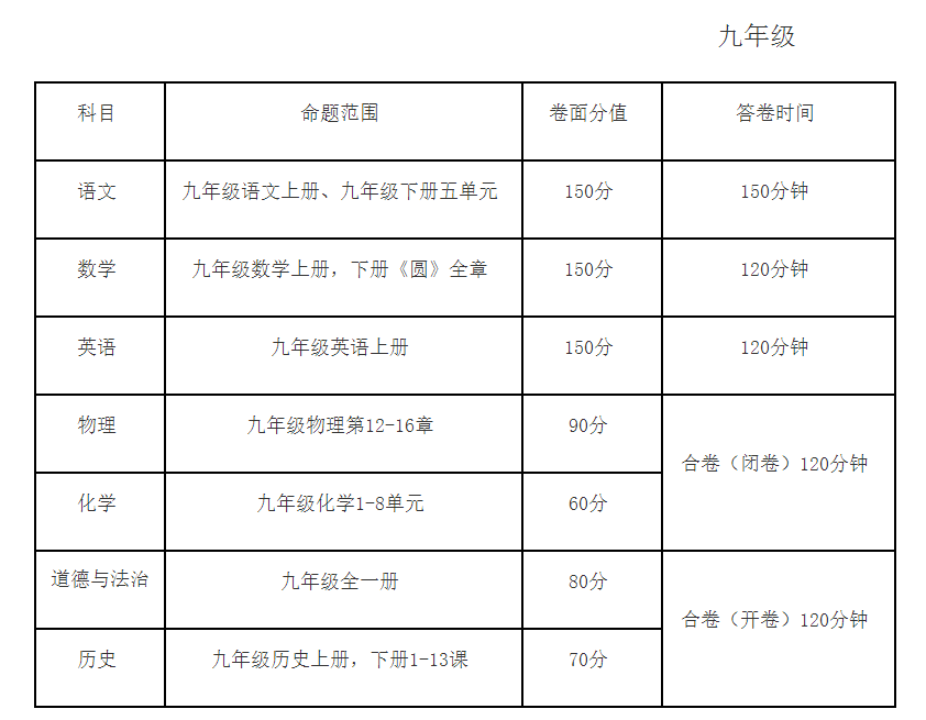 根据区教体局工作安排,本学期将对初中七年级语文、数学、英语和八年级语文、数学、英语、物理、道德与法治、历史以及九年级语文、数学、英语、物理、化学、道德与法治、历史共16门学科进行期末质量检测。现将有关工作通知如下:
